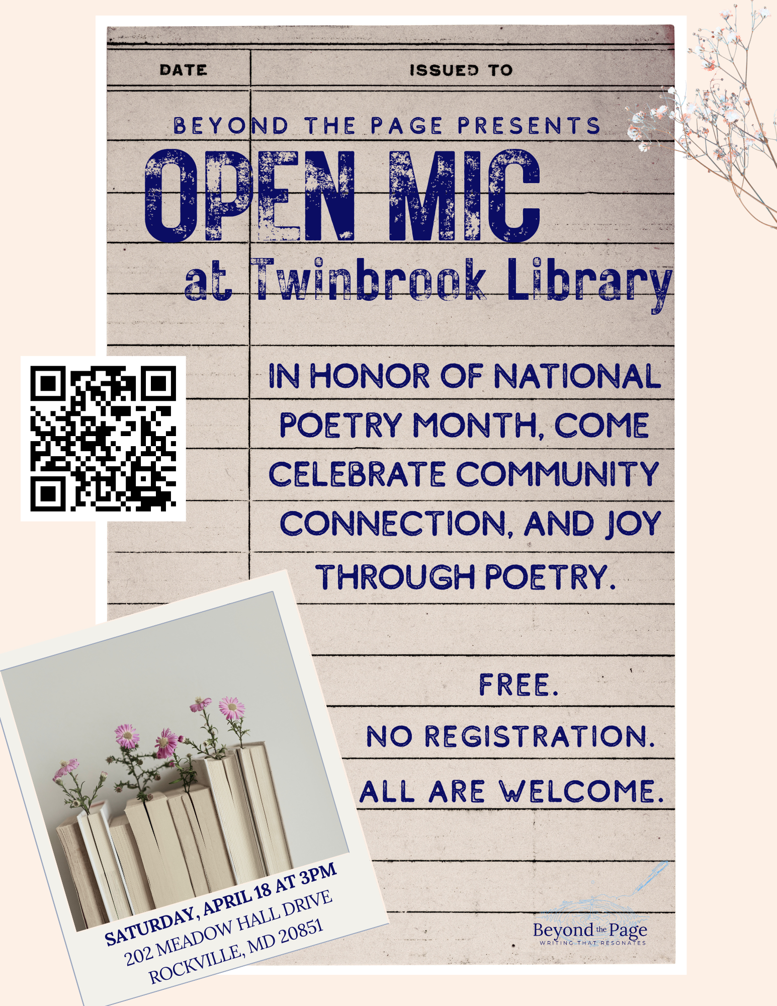 In honor of National Poetry Month, come celebrate community, connection, and joy through poetry. Whether you're a new poet, seasoned writer, or simply verse-curious, come take the mic -- or simply enjoy the show -- and share your original work or childhood favorite.